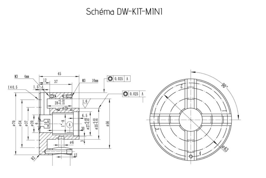 - 1 mandrin de 4 mors Ø70mm