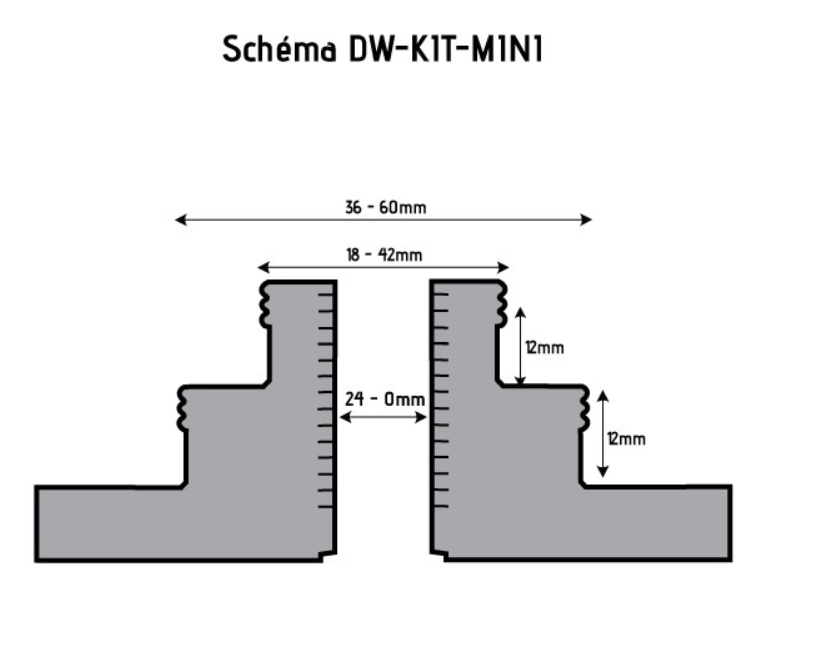 - 1 jeu de mors queue d’aronde montée (Plage en compression 30 mm min / 54 mm max – Plage en extension 38 mm min / 62 mm max)