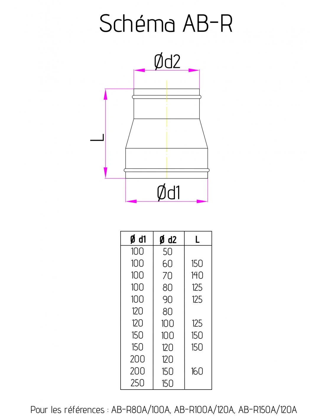 - Ø entrée 80 mm intérieur / Ø sortie 100 mm extérieur