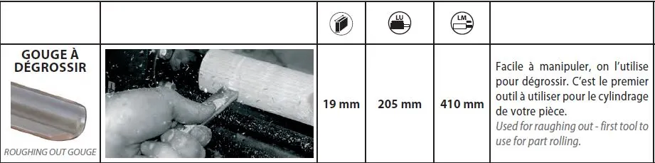 - Gouge à dégrossir : 19 mm 205 mm 410 mm