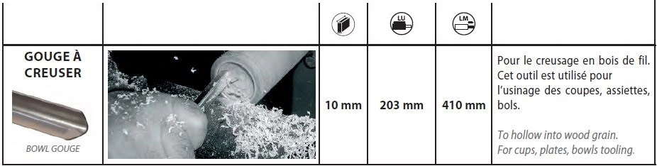 - Gouge à creuser : 10 mm 203 mm 410 mm