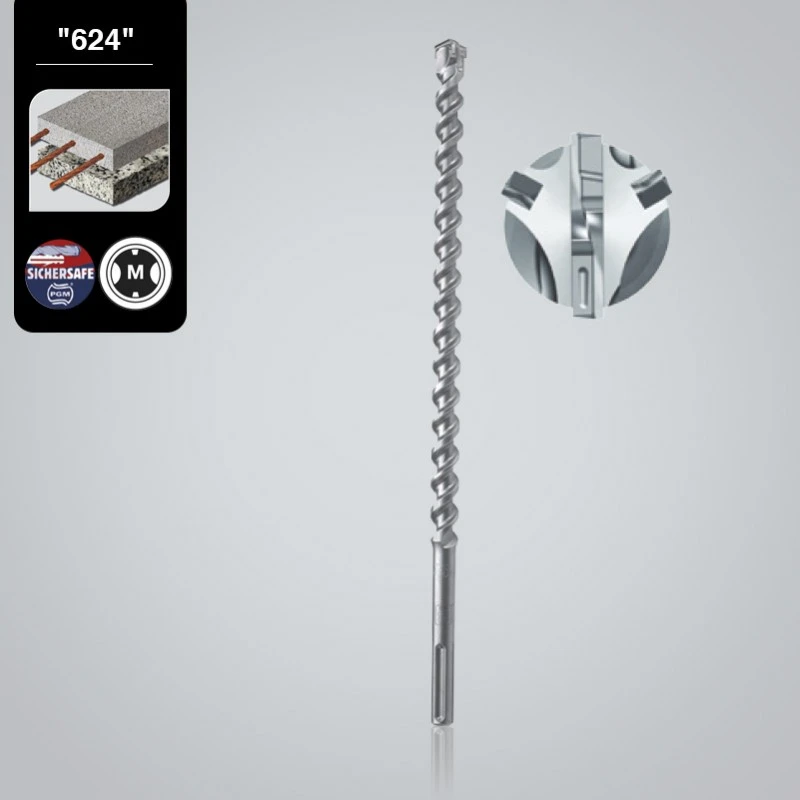 – Goujure plus large pour une meilleure évacuation de la poussière, moins d’échauffements et une vitesse de perçage plus rapide
