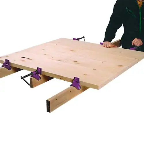 - Têtes en fonte permettant la réalisation d’un serre-joint à dormant sur toute longueur de matériau de 27 mm de largeur.
